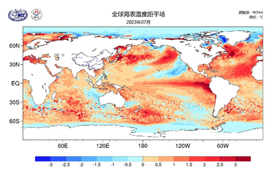 2023年7月海表溫度距平分布圖