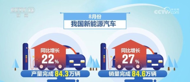 中國(guó)汽車工業(yè)協(xié)會(huì)的數(shù)據(jù)顯示,8月份,我國(guó)新能源汽車產(chǎn)銷量分別完成84.3萬(wàn)輛和84.6萬(wàn)輛,同比分別增長(zhǎng)22%和27%,市場(chǎng)占有率達(dá)到32.8%。1月—8月,新能源汽車產(chǎn)銷分別完成543.4萬(wàn)輛和537.4萬(wàn)輛,同比分別增長(zhǎng)36.9%和39.2%。