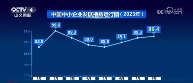 8月,中國中小企業(yè)發(fā)展指數(shù)為89.4,比7月上升0.1點(diǎn),這是繼6月、7月分別上升0.2點(diǎn)之后,連續(xù)第三個月上升。