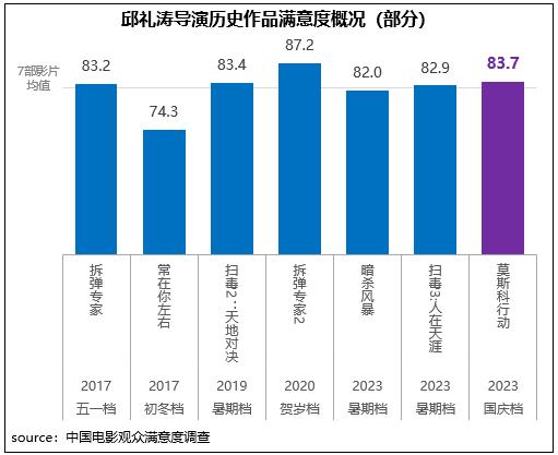 邱禮濤導(dǎo)演執(zhí)導(dǎo)的警匪動(dòng)作電影《93國(guó)際列車(chē)大劫案:莫斯科行動(dòng)》獲得觀眾滿意度評(píng)分83.7分,與檔期第一名和第二名僅差0.4分和0.1分;在滿意度調(diào)查過(guò)的邱禮濤導(dǎo)演七部影片中,《莫斯科行動(dòng)》滿意度處在平均水平之上。