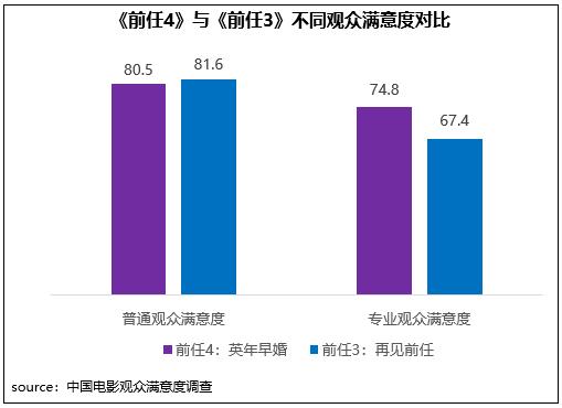 《前任4:英年早婚》在同系列影片輕松、寫(xiě)實(shí)創(chuàng)作風(fēng)格基礎(chǔ)上,進(jìn)階到婚姻話題探討,并進(jìn)一步強(qiáng)化對(duì)觀眾現(xiàn)實(shí)情感生活的細(xì)致洞察,成為當(dāng)代人的愛(ài)情圖鑒。在不同觀眾評(píng)價(jià)中,影片相對(duì)更受專(zhuān)業(yè)觀眾的青睞,專(zhuān)業(yè)觀眾滿意度得分74.8分,高于上一部作品7.4分,其中精彩對(duì)白、傳播方式得分居檔期第二和第三位;但普通觀眾對(duì)其評(píng)價(jià)一般,滿意度得分80.5分,比上一部低1.1分。