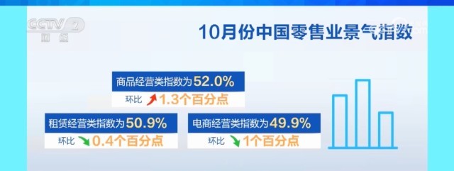 央視網(wǎng)消息:10月9日,中國商業(yè)聯(lián)合會發(fā)布10月份中國零售業(yè)景氣指數(shù)為51.3%,較上月微升0.5個(gè)百分點(diǎn),創(chuàng)近一年新高。