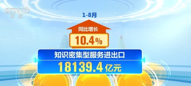 知識密集型服務(wù)貿(mào)易占比提升。1—8月,知識密集型服務(wù)進(jìn)出口18139.4億元,同比增長10.4%,占服務(wù)進(jìn)出口總額的比重達(dá)42.6%,較上年同期提升0.9個(gè)百分點(diǎn)。知識密集型服務(wù)出口10513.6億元,增長13.1%,知識密集型服務(wù)進(jìn)口7625.8億元,增長6.9%。