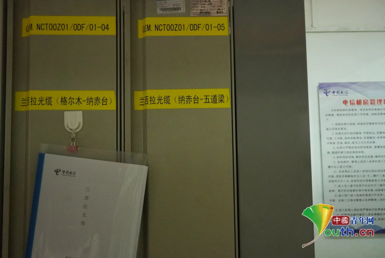 納赤臺機房蘭西拉光纜機柜?!≈袊嗄昃W(wǎng)記者 曹迪攝