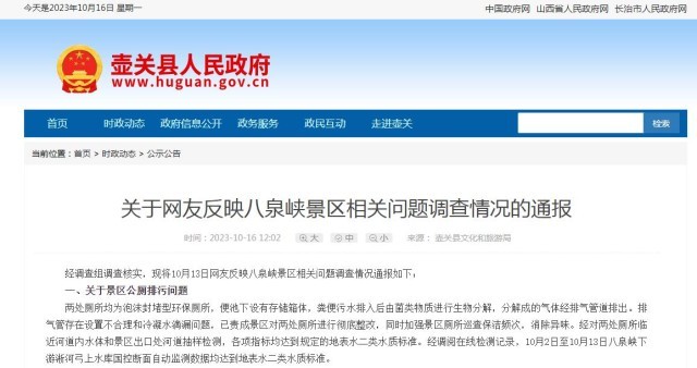 5A級景區(qū)公廁污水直排河流?山西壺關(guān):已責成徹底整改
