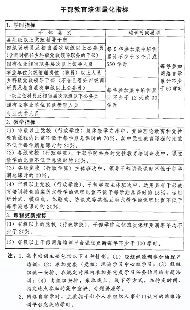 ?。ǘ┩貙捙嘤?xùn)渠道。根據(jù)黨政領(lǐng)導(dǎo)干部、國有企事業(yè)單位領(lǐng)導(dǎo)人員和機(jī)關(guān)公務(wù)員、年輕干部、基層干部、專業(yè)技術(shù)人員等不同對象特點(diǎn),整合優(yōu)質(zhì)資源,多渠道多方面開展履職能力培訓(xùn)。發(fā)揮各級黨校(行政學(xué)院)、干部學(xué)院主體作用,圍繞黨中央重大決策部署和國家重大戰(zhàn)略需求、地方黨委和政府中心工作開展專題培訓(xùn);發(fā)揮部門行業(yè)培訓(xùn)機(jī)構(gòu)特色優(yōu)勢,開展專門政策解讀、重點(diǎn)任務(wù)落實(shí)等專題培訓(xùn);發(fā)揮國有企業(yè)培訓(xùn)機(jī)構(gòu)作用,開展國有企業(yè)領(lǐng)導(dǎo)人員治企興企、提高企業(yè)核心競爭力、強(qiáng)化企業(yè)科技創(chuàng)新主體地位等專題培訓(xùn);發(fā)揮干部教育培訓(xùn)高?;貙W(xué)科專業(yè)優(yōu)勢,開展新知識新技能等培訓(xùn);發(fā)揮基層干部教育培訓(xùn)機(jī)構(gòu)特色優(yōu)勢,開展基層干部實(shí)務(wù)培訓(xùn);發(fā)揮專業(yè)技術(shù)人員繼續(xù)教育基地資源優(yōu)勢,開展專業(yè)技術(shù)能力提升培訓(xùn);發(fā)揮職業(yè)學(xué)校(含技工院校)培養(yǎng)高技能人才的基礎(chǔ)性作用,開展技術(shù)技能培訓(xùn);發(fā)揮中國干部網(wǎng)絡(luò)學(xué)院等網(wǎng)絡(luò)學(xué)習(xí)平臺廣覆蓋、便捷化的優(yōu)勢,抓好履職通識培訓(xùn);發(fā)揮派出單位和接收單位協(xié)作優(yōu)勢,抓好援派幫扶干部人才、掛職干部等教育培訓(xùn)。積極創(chuàng)造條件,支持干部在職自學(xué)。實(shí)施干部履職能力提升計(jì)劃(專欄4)。