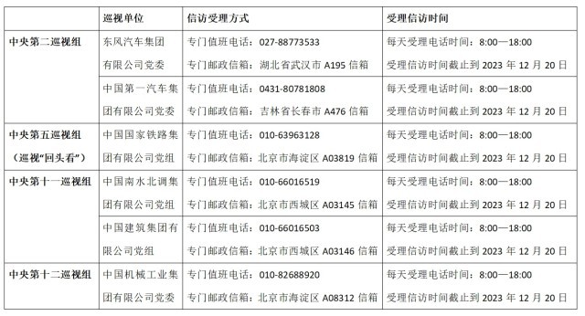 截至目前,中央巡視組已進(jìn)駐6家單位,并公布了信訪聯(lián)系方式。