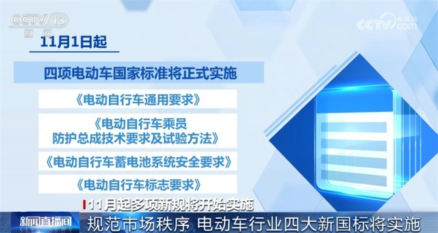 11月1日起,四項(xiàng)電動(dòng)車(chē)國(guó)家標(biāo)準(zhǔn)將正式實(shí)施,分別是《電動(dòng)自行車(chē)通用要求》《電動(dòng)自行車(chē)乘員防護(hù)總成技術(shù)要求及試驗(yàn)方法》《電動(dòng)自行車(chē)蓄電池系統(tǒng)安全要求》以及《電動(dòng)自行車(chē)標(biāo)志要求》。這些標(biāo)準(zhǔn)對(duì)電動(dòng)車(chē)的設(shè)計(jì)制造、安全性能、電池系統(tǒng)和標(biāo)識(shí)等方面都提出了明確規(guī)定,涉及電動(dòng)車(chē)的車(chē)把、鋰電池、總線(xiàn)設(shè)計(jì)、電子控制系統(tǒng)等。
