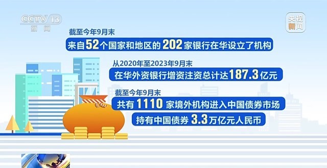 金融開放步伐加快。截至今年9月末,來自52個國家和地區(qū)的202家銀行在華設(shè)立了機構(gòu);從2020年至2023年9月末,在華外資銀行增資注資總計達187.3億元。截至今年9月末,共有1110家境外機構(gòu)進入中國債券市場,持有中國債券3.3萬億元人民幣。