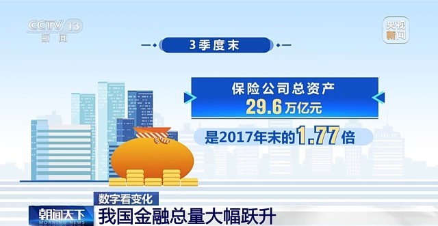 保險方面,3季度末,保險公司總資產(chǎn)29.6萬億元,是2017年末的1.77倍。從2018年到今年3季度末,保險公司賠款與給付累計支出8.4萬億元,保險的保障功能日益突出。