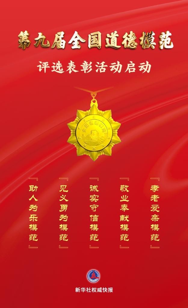 據(jù)悉,第九屆全國道德模范分為“助人為樂模范”“見義勇為模范”“誠實(shí)守信模范”“敬業(yè)奉獻(xiàn)模范”“孝老愛親模范”5個(gè)類別,通過群眾推薦、遴選審核、公示宣傳、投票評選等步驟評選產(chǎn)生。