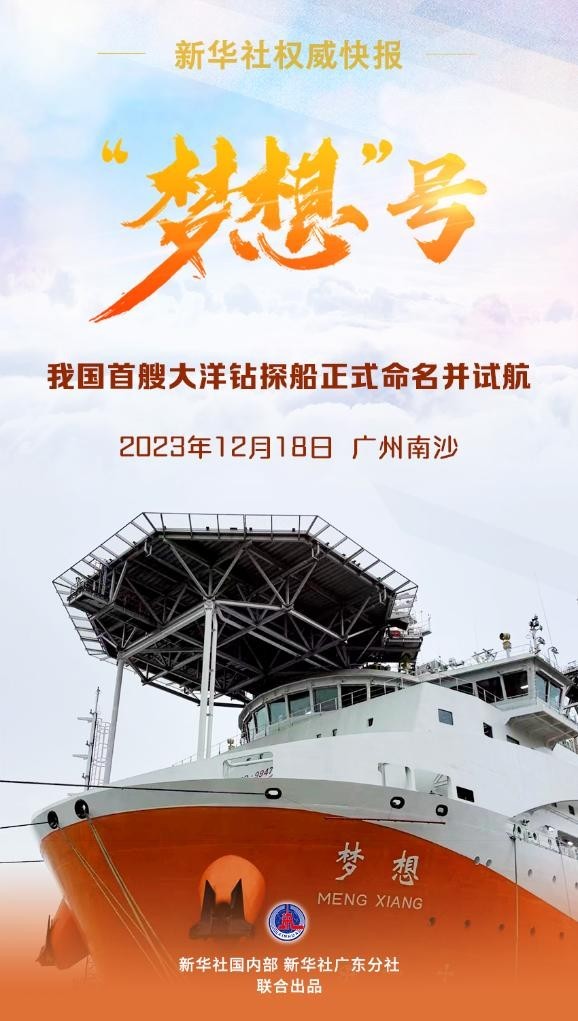 12月18日,我國自主設(shè)計建造的首艘大洋鉆探船正式命名為“夢想”號,并在廣州南沙首次試航。