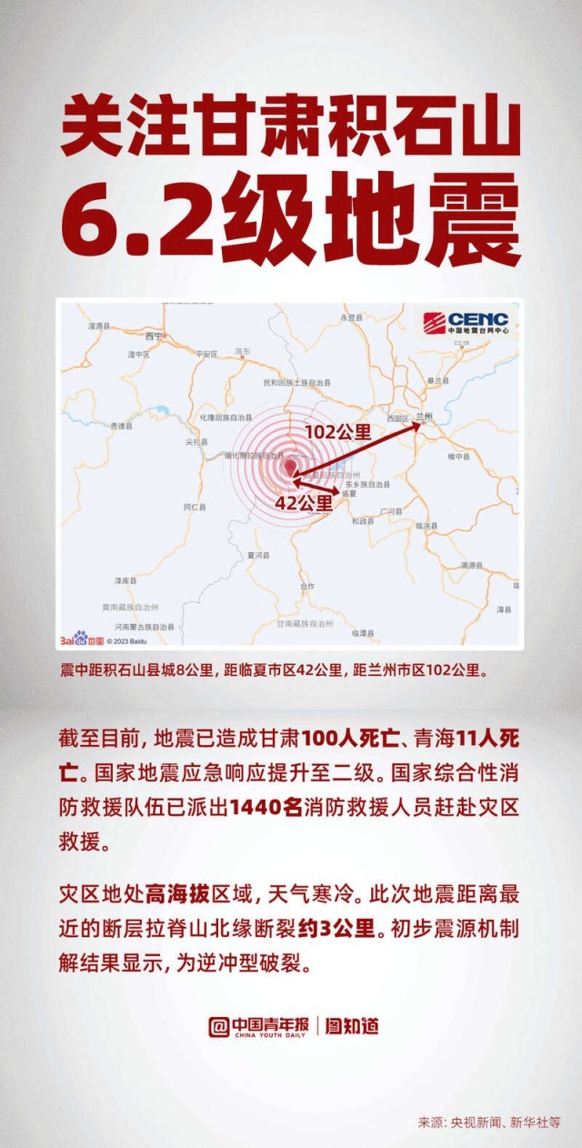 圖知道|關注甘肅積石山6.2級地震:已造成至少111人死亡,救援進行中