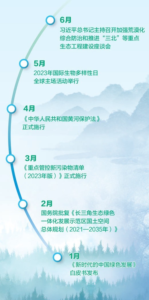 總結(jié)新時代10年的實踐經(jīng)驗,我們對生態(tài)文明建設的規(guī)律性認識不斷深化。2023年是我國生態(tài)文明建設道路上具有里程碑意義的一年。這一年,我國天更藍、地更綠、水更清,美麗中國建設交出滿意答卷,人民群眾獲得感、幸福感、安全感顯著增強。這一年,全國生態(tài)環(huán)境保護大會召開,我國迎來首個全國生態(tài)日,黃河保護法正式施行,“三北”工程三大標志性戰(zhàn)役開局順利,綠色低碳發(fā)展腳步不斷加快。