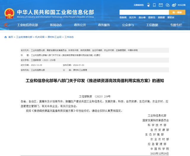 央視網(wǎng)消息:工信部等八部門印發(fā)《推進磷資源高效高值利用實施方案》,其中提出,堅持分類施策,推進產(chǎn)品結(jié)構(gòu)調(diào)整。嚴格控制磷銨、黃磷等行業(yè)新增產(chǎn)能。促進磷肥保供穩(wěn)價,優(yōu)先保障磷肥企業(yè)磷礦需求,引導(dǎo)企業(yè)科學排產(chǎn)、維持合理庫存、穩(wěn)定市場預(yù)期,支持骨干企業(yè)做優(yōu)做強,積極發(fā)展新型高效磷肥品種。擴大濕法凈化磷酸及黃磷精深加工生產(chǎn)能力,延伸發(fā)展功能性磷酸鹽等高附加值磷化學品,推動產(chǎn)業(yè)發(fā)展方式由規(guī)模擴張向精細化、專用化、系列化的服務(wù)型制造轉(zhuǎn)變。