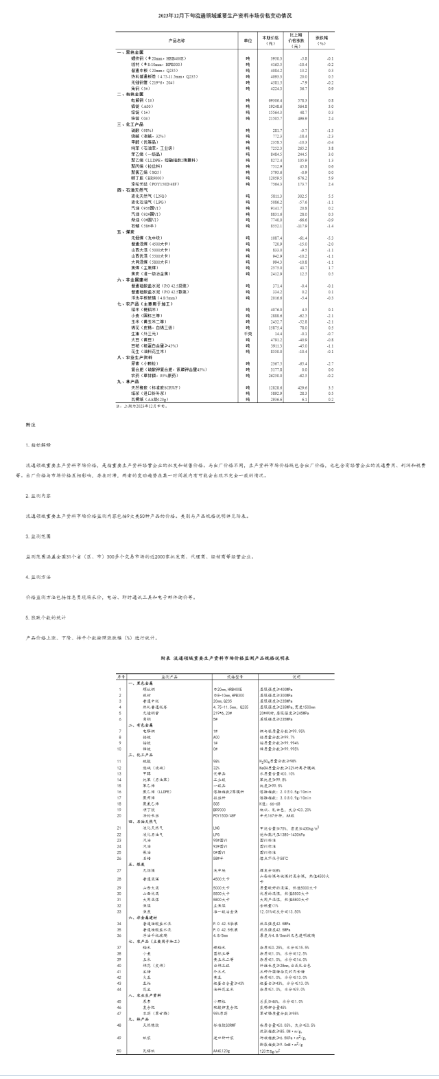 央視網(wǎng)消息:國家統(tǒng)計局發(fā)布數(shù)據(jù),據(jù)對全國流通領(lǐng)域9大類50種重要生產(chǎn)資料市場價格的監(jiān)測顯示,2023年12月下旬與12月中旬相比,24種產(chǎn)品價格上漲,24種下降,2種持平。其中,生豬(外三元)每千克價格比12月中旬下跌0.1元,跌幅0.7%。