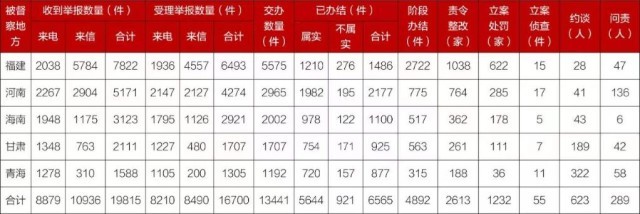 截至2023年12月31日,各督察組共收到群眾來電、來信舉報(bào)19815件,受理有效舉報(bào)16700件,經(jīng)梳理合并重復(fù)舉報(bào),累計(jì)向相關(guān)省轉(zhuǎn)辦13441件。相關(guān)省已辦結(jié)或階段辦結(jié)11457件。其中,立案處罰1232家,立案?jìng)刹?5件;約談黨政領(lǐng)導(dǎo)干部623人,問責(zé)黨政領(lǐng)導(dǎo)干部289人。