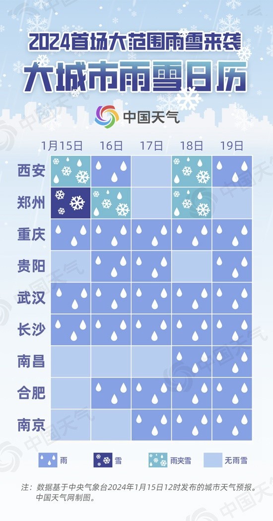 2024年首場(chǎng)大范圍雨雪日歷出爐 武漢重慶等地開(kāi)啟陰雨周