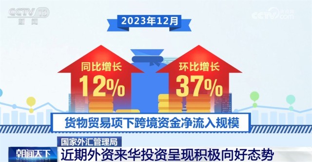 國家外匯管理局?jǐn)?shù)據(jù)顯示,2023年12月,我國貨物貿(mào)易保持較高規(guī)模資金凈流入,近期外資來華投資呈現(xiàn)積極向好態(tài)勢(shì)。