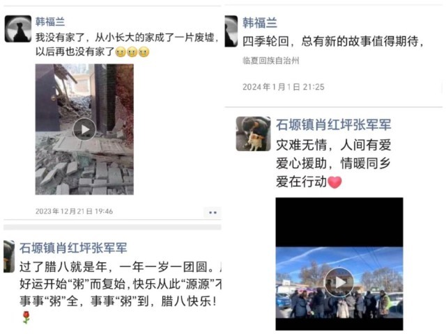 這是積石山縣部分受災(zāi)群眾微信朋友圈截圖。