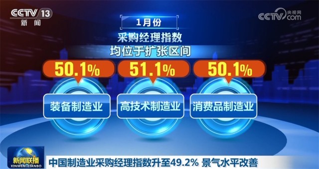 中國物流與采購聯(lián)合會(huì)、國家統(tǒng)計(jì)局服務(wù)業(yè)調(diào)查中心1月31日公布,1月份中國制造業(yè)采購經(jīng)理指數(shù)為49.2%,較上月回升0.2個(gè)百分點(diǎn),結(jié)束了連續(xù)3個(gè)月下降勢(shì)頭,景氣水平有所改善。