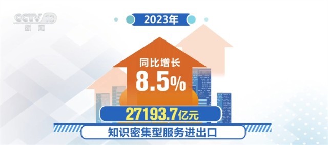 數(shù)據(jù)顯示,2023年全年我國服務進出口總額65754.3億元人民幣,同比增長10%。知識密集型服務貿(mào)易較快增長。2023年,知識密集型服務進出口27193.7億元,同比增長8.5%。其中,知識密集型服務出口增長最快的領域為保險服務,增幅達67%。知識密集型服務進口增長最快的領域為個人、文化和娛樂服務,增幅達61.7%。知識密集型服務貿(mào)易順差3676.7億元,同比擴大423.5億元。