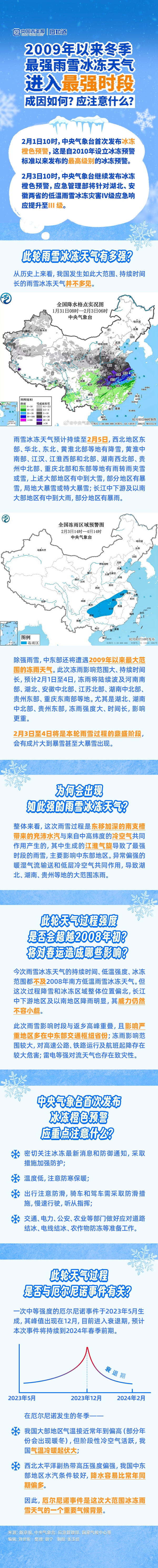 今冬此刻南方多省雨雪紛紛,氣溫驟降。2月3日,中央氣象臺繼續(xù)發(fā)布冰凍橙色預警,應(yīng)急管理部將11省份的低溫雨雪冰凍災(zāi)害應(yīng)急響應(yīng)提升至IV級及以上。說好的暖冬為何這么冷?強度是否會超越2008年初?有哪些需要注意的方面?