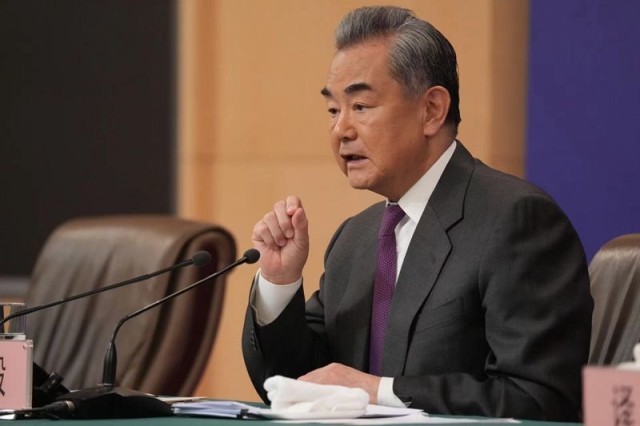 3月7日上午,十四屆全國人大二次會議舉行記者會,中共中央政治局委員、外交部部長王毅談中非關(guān)系。中青報·中青網(wǎng)記者 李雋輝/攝