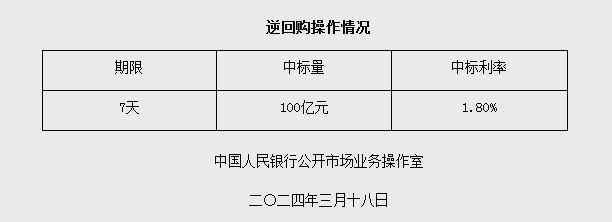 3月18日央行開展100億元7天逆回購(gòu)操作