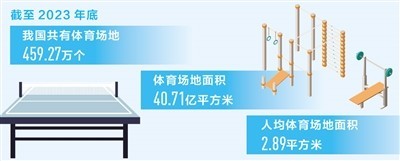 截至2023年底我國共有體育場地459.27萬個(gè) 人均面積2.89平方米