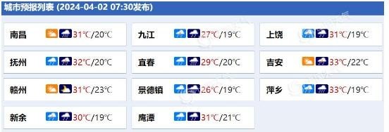 江西各城市天氣預報。(來源:中國天氣網(wǎng))
