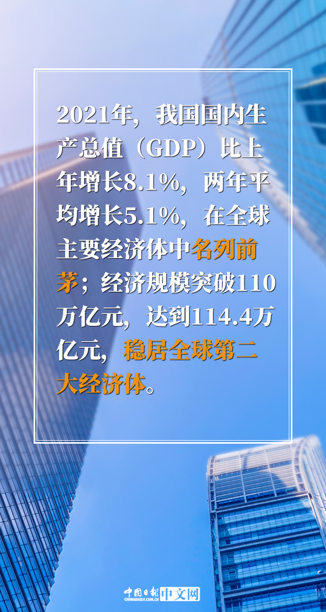 2021年,我國成功戰(zhàn)勝疫情等多重挑戰(zhàn),經(jīng)濟(jì)實(shí)力、社會生產(chǎn)力和綜合國力穩(wěn)步提高,改革開放創(chuàng)新深入推進(jìn),民生福祉持續(xù)提升,實(shí)現(xiàn)了“十四五”良好開局。最新發(fā)布的《2021年國民經(jīng)濟(jì)和社會發(fā)展統(tǒng)計(jì)公報(bào)》顯示,2021年,我國國內(nèi)生產(chǎn)總值(GDP)比上年增長8.1%,兩年平均增長5.1%,在全球主要經(jīng)濟(jì)體中名列前茅;連續(xù)5年蟬聯(lián)全球貨物貿(mào)易第一位;主要工業(yè)產(chǎn)品產(chǎn)量穩(wěn)居世界首位……我國遞出了一份亮眼的“成績單”。
