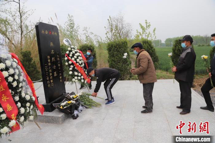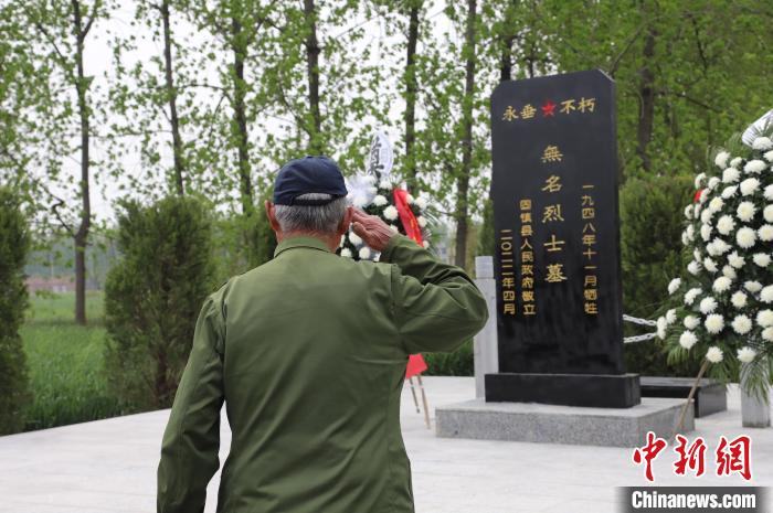 中新網(wǎng)合肥4月27日電 (劉浩 陶安杰 陳春怡 和鵬飛 王問)在安徽省蚌埠市固鎮(zhèn)縣湖溝鎮(zhèn)王洲村,淮海戰(zhàn)役30余名無名烈士合葬墓立碑儀式近日舉行,當(dāng)?shù)叵嚓P(guān)部門及普通百姓自發(fā)前往現(xiàn)場,憑吊烈士忠魂,緬懷烈士功績,傳承紅色基因,告慰先烈英靈。
