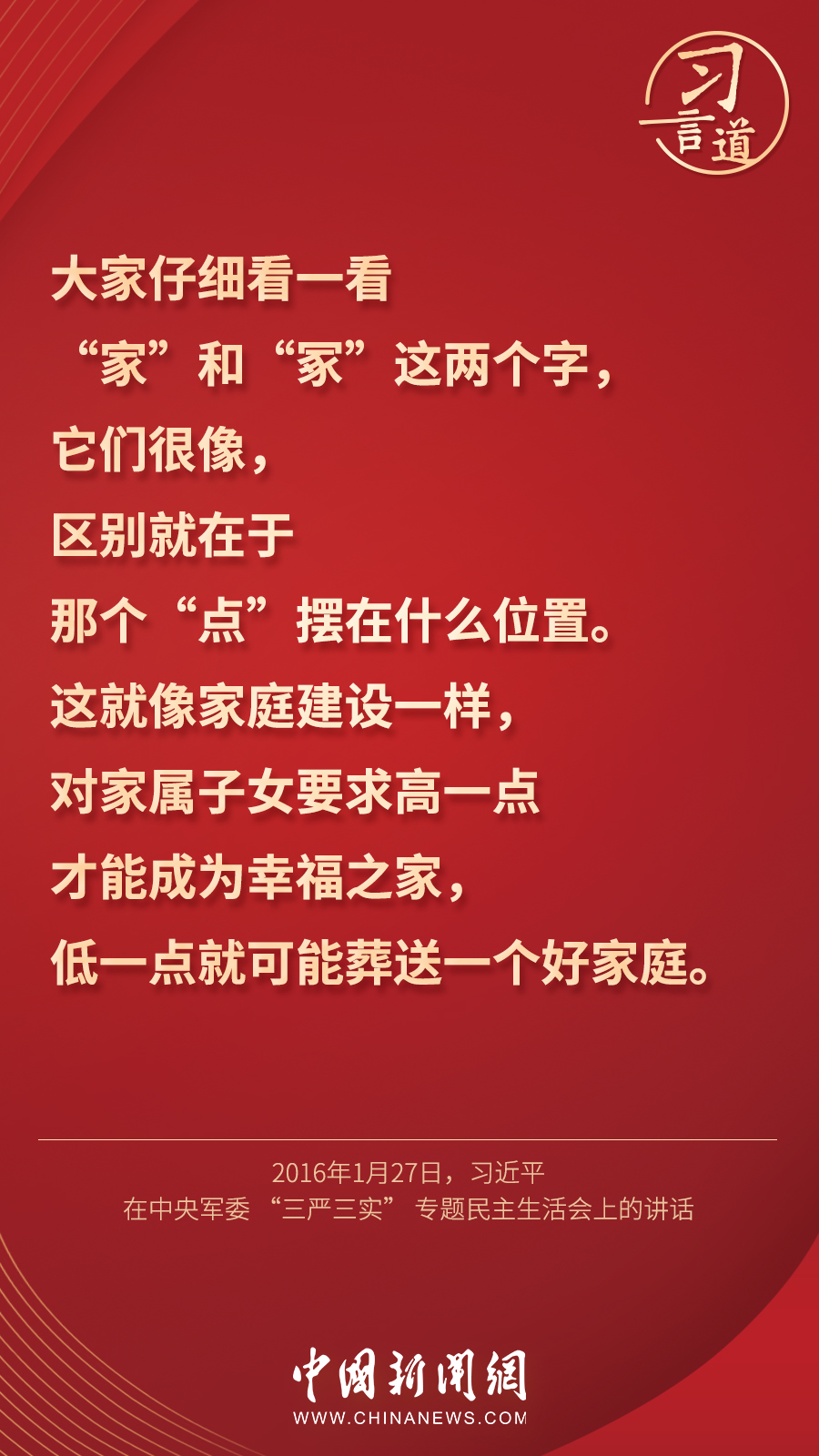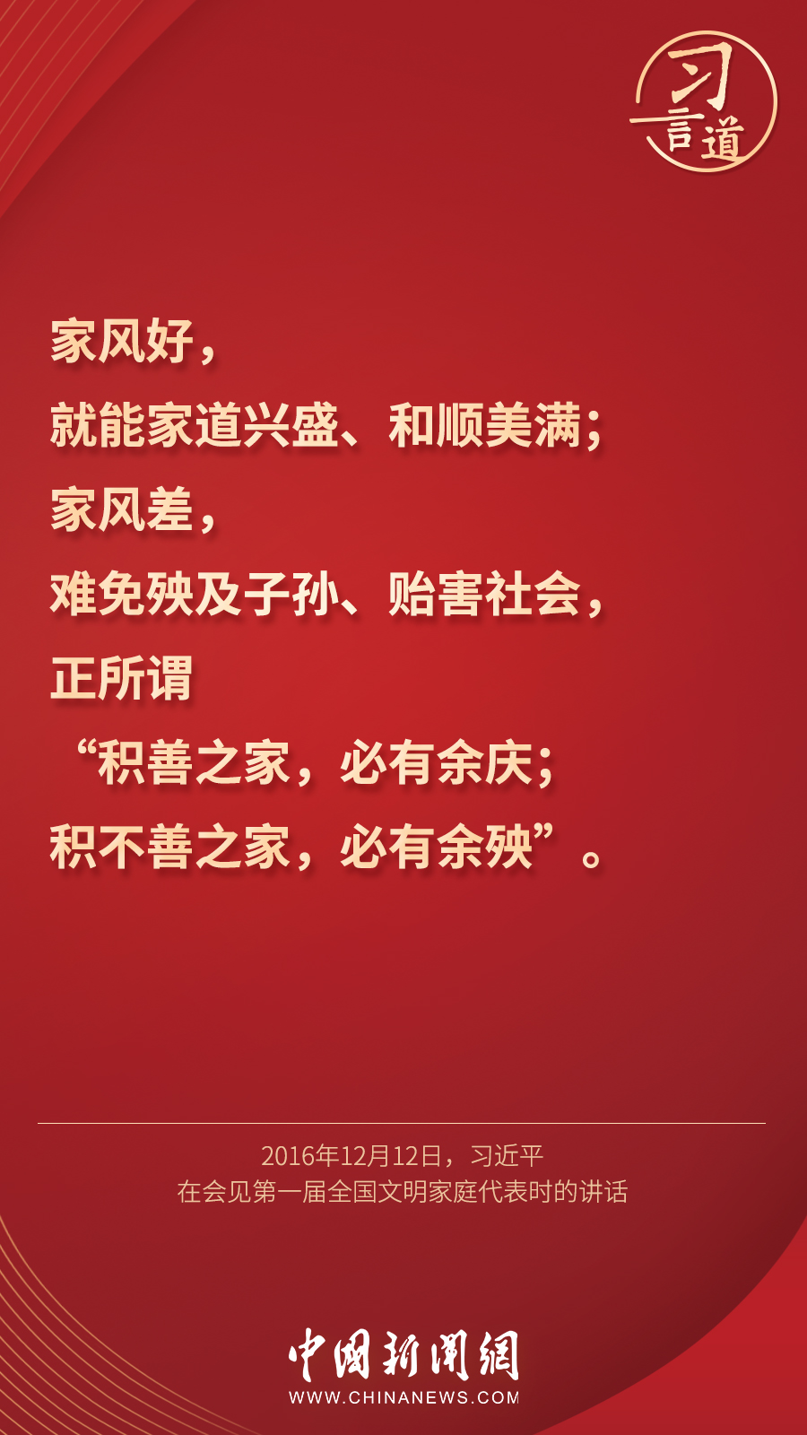 “家庭不只是人們身體的住處,更是人們心靈的歸宿?!苯陙恚暯娇倳洶l(fā)表過諸多關于重視親情、營造良好家風的重要論述,他指出——