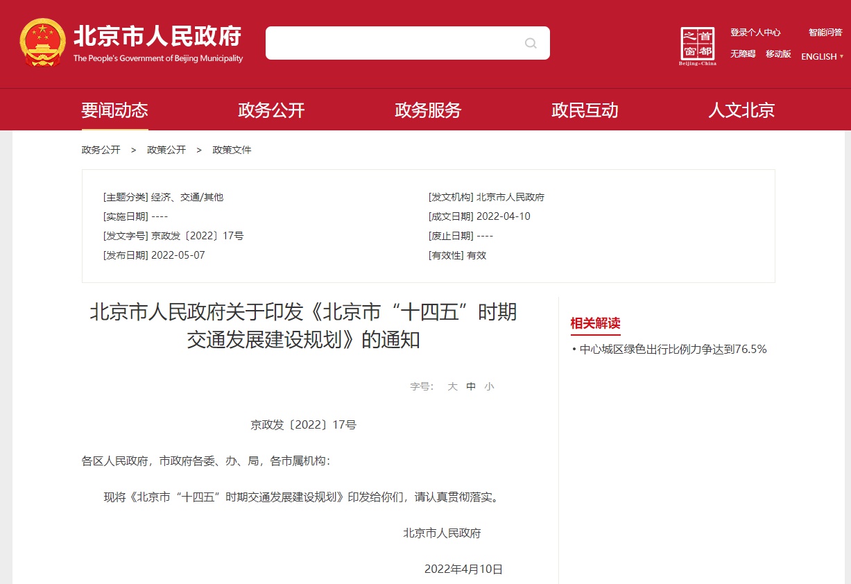 北京市人民政府網(wǎng)站5月7日印發(fā)《北京市“十四五”時(shí)期交通發(fā)展建設(shè)規(guī)劃》(以下簡(jiǎn)稱《規(guī)劃》)的通知?!兑?guī)劃》提出,持續(xù)優(yōu)化交通結(jié)構(gòu),從方式調(diào)控交通需求,其中明確,加強(qiáng)擁車用車管理,降低小客車出行強(qiáng)度。調(diào)控小客車數(shù)量,逐步增加新能源指標(biāo)占比,優(yōu)先向無(wú)車家庭配置小客車指標(biāo),加強(qiáng)“一人名下多車”治理,推動(dòng)個(gè)人名下第二輛及以上在本市登記的小客車有序退出,到2025年,全市小客車保有量控制在580萬(wàn)輛以內(nèi)。