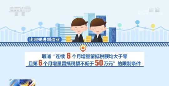 在擴大范圍、提高比例以及加快頻次上,與前期政策相比,實施力度均有所加大。對小微企業(yè)和制造業(yè)等六個行業(yè),不僅允許其退還增量留抵稅額,而且允許其退還存量留抵稅額。將小微企業(yè)和制造業(yè)等六個行業(yè)增量留抵稅額退還比例由60%提高到100%,和先進制造業(yè)保持一致。另外,對所有小微企業(yè)和制造業(yè)等六個行業(yè)納稅人均按月退還增量留抵稅額,比照先進制造業(yè),取消“連續(xù)6個月增量留抵稅額均大于零,且第6個月增量留抵稅額不低于50萬元”的限制條件。