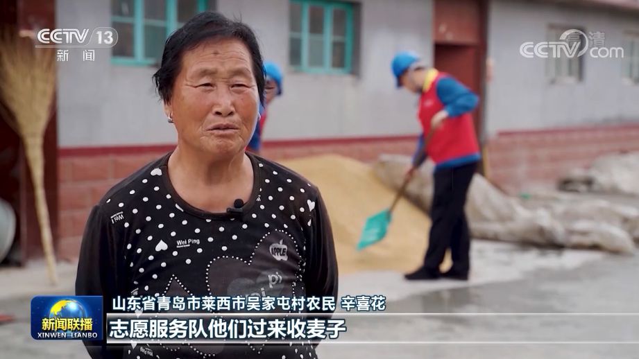在山東萊西,66萬多畝小麥進(jìn)入集中收獲期,當(dāng)?shù)?0多家社會化服務(wù)組織和志愿服務(wù)隊(duì)活躍在麥?zhǔn)找痪€。吳家屯村農(nóng)民辛喜花的孩子在外打工,在志愿服務(wù)隊(duì)幫助下,她家3畝多小麥不到一小時(shí)就收獲完成運(yùn)送到家。