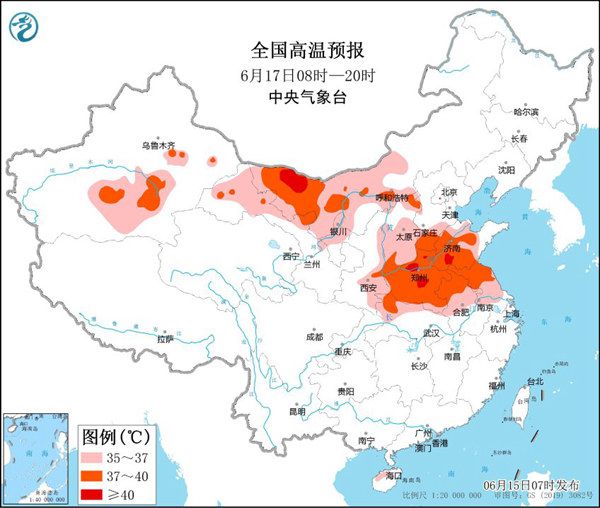 根據(jù)中央氣象臺(tái)預(yù)報(bào),今天起至22日,北方多地將出現(xiàn)持續(xù)性高溫天氣,17至18日為最強(qiáng)時(shí)段。河北、河南、山東、湖北、江蘇、安徽、內(nèi)蒙古、陜西、山西、寧夏、新疆、甘肅等12省區(qū)部分地區(qū)日最高氣溫可達(dá)35℃至38℃,局部可達(dá)40℃左右。