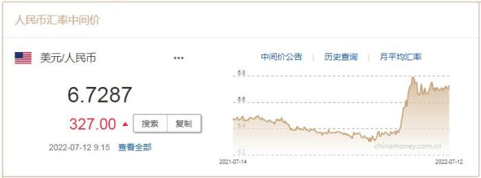 12日人民幣對美元匯率中間價6.7287元 下調(diào)327個基點(diǎn)
