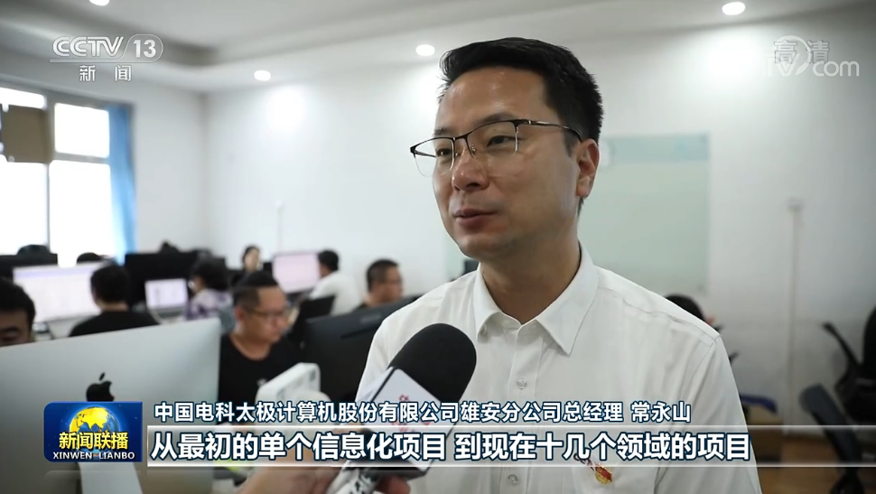中國電科太極計算機(jī)股份有限公司雄安分公司總經(jīng)理 常永山:我們剛來新區(qū)的時候,團(tuán)隊只有兩三個人,經(jīng)過這幾年的發(fā)展已經(jīng)有一百二三十人了,從最初單個的信息化項目,到現(xiàn)在十幾個領(lǐng)域的項目。