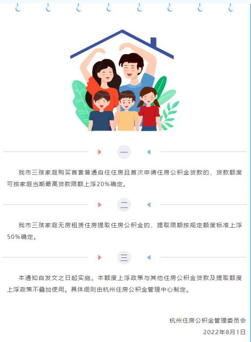 中新網(wǎng)8月1日電 據(jù)“杭州公積金發(fā)布”公眾號(hào)8月1日消息,杭州住房公積金管理委員會(huì)發(fā)布通知,加大對三孩家庭解決基本住房問題的支持力度。