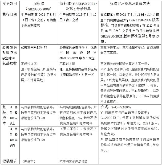 中消協(xié)也呼吁社會各界對照下表中包裝層數、包裝成本、混裝要求等三項內容,對市場上銷售的月餅產品進行監(jiān)督。同時監(jiān)督要依法客觀公正,不得損害經營者的商業(yè)信譽等合法權益。