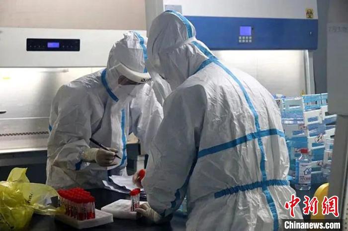 連夜檢驗剛送來的核酸檢測標(biāo)本。 新疆兵團十三師紅星醫(yī)院提供