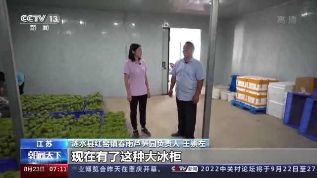 江蘇省漣水縣紅窯鎮(zhèn)春雨蘆筍園負(fù)責(zé)人 王崇左:過(guò)去天熱的兩個(gè)月我們就不采收,現(xiàn)在有了這種大冰柜,可以大膽采收了。