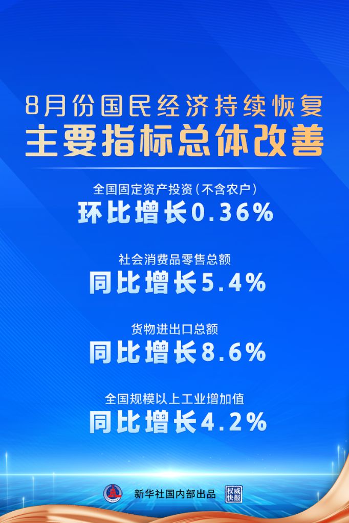 國家統(tǒng)計局:8月份國民經(jīng)濟持續(xù)恢復(fù),主要指標總體改善