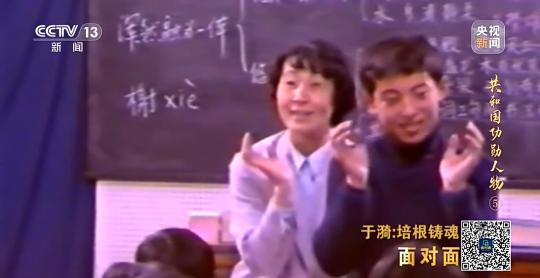 于漪:他說(shuō)注意這個(gè)詞讀“煢”,大家要看清楚,這個(gè)下面不是一撇,是一豎,筆直,筆直。他在黑板上就寫了一個(gè)大字“煢”,筆直,筆直,記得再窮脊梁骨要硬,他教的是字形字音,給我們?nèi)霾サ氖亲鋈说览?。我們今天講上課要有德育,這不就是德育嗎?