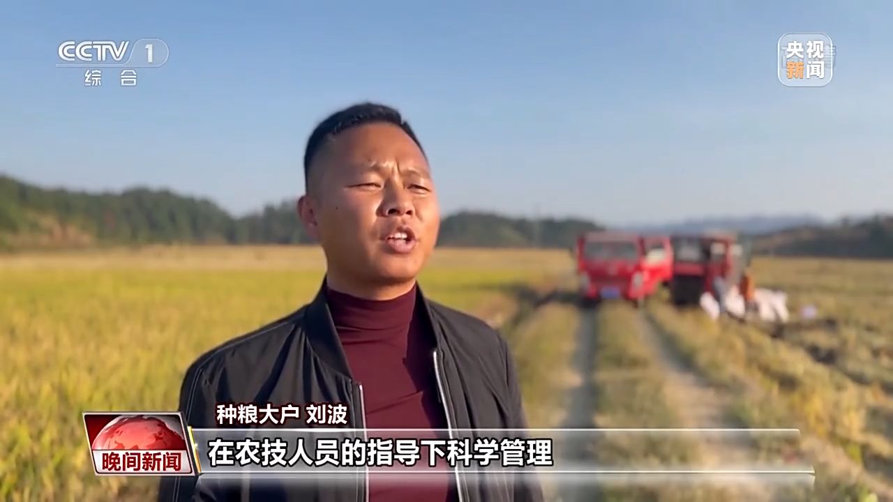 江西撫州黎川縣潭溪鄉(xiāng)蘆陂村種糧戶 湯希堯:按照這個速度今天一天就能全部割完。今年晚稻的長勢還算不錯,畝產都在千斤以上。