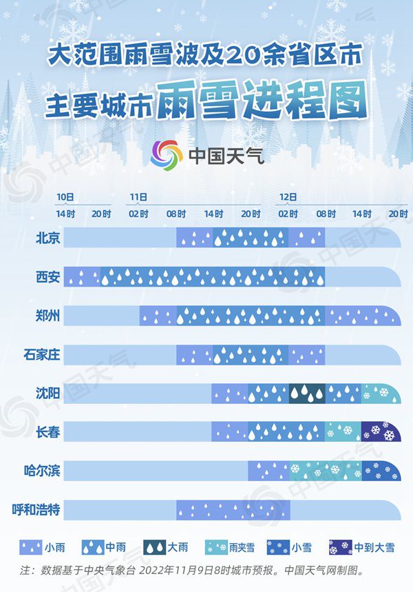 今冬北方首場大范圍雨雪來襲 一圖掌握重點城市雨雪進程