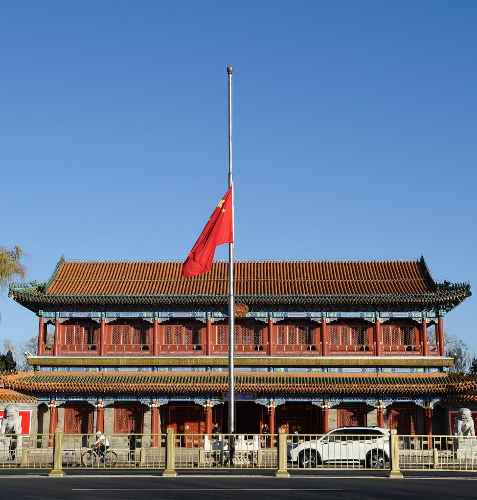 新華門下半旗悼念江澤民同志逝世