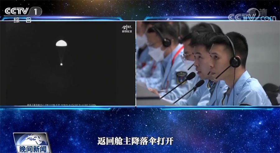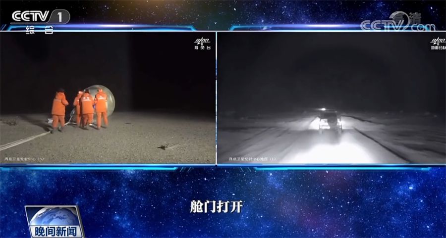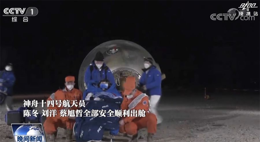 返回艙成功著陸后,擔負搜救回收任務的搜救分隊及時發(fā)現(xiàn)目標并抵達著陸現(xiàn)場。返回艙艙門打開后,醫(yī)監(jiān)醫(yī)保人員確認航天員身體健康。